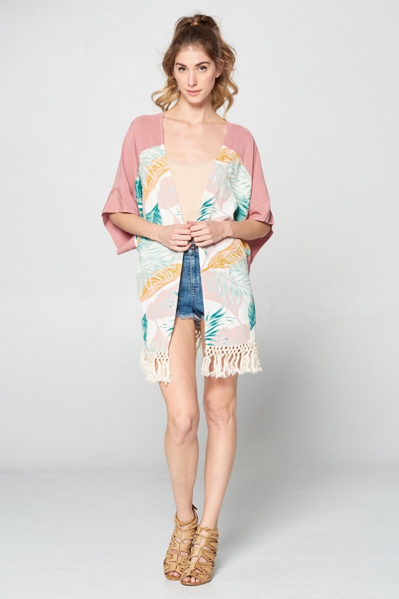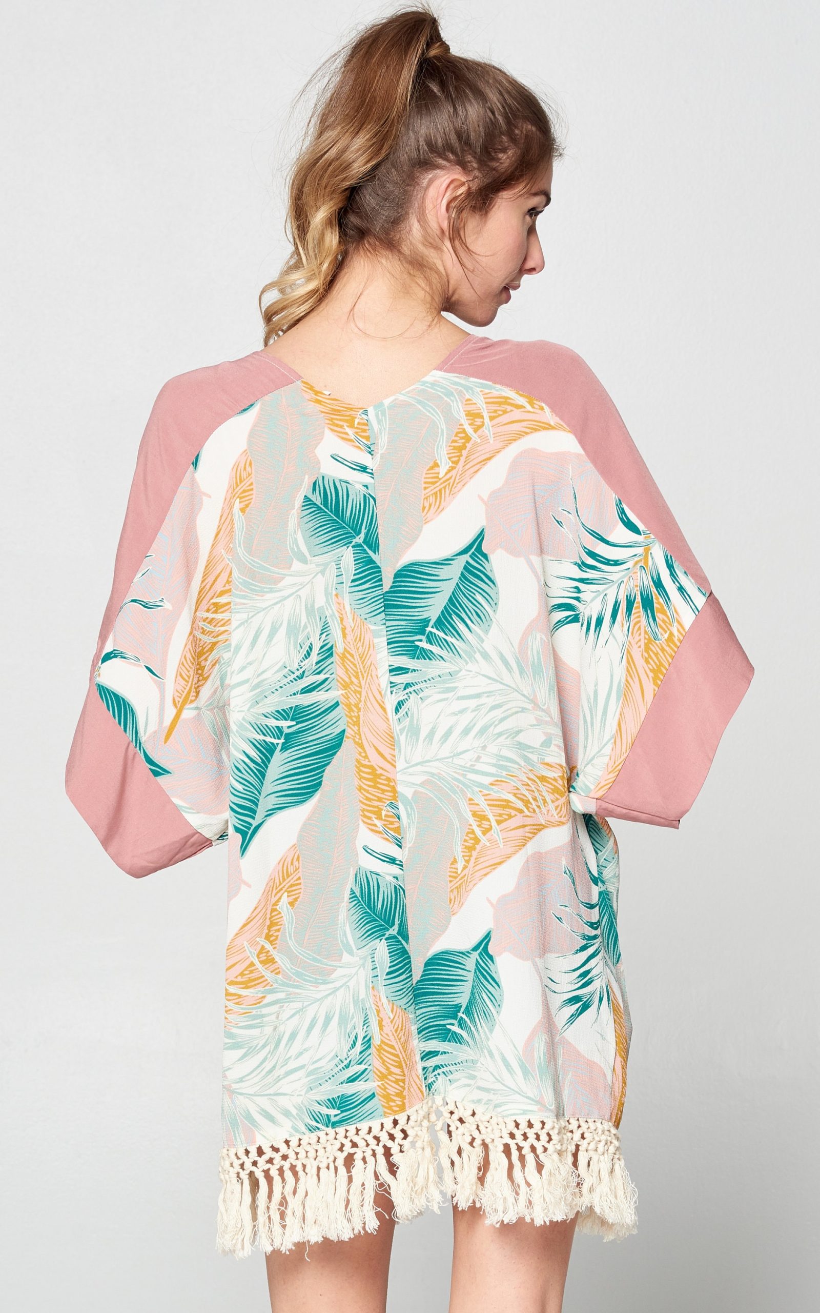 Tropical Fringe Kimono Cardigan Rayon Blend Beach Cover